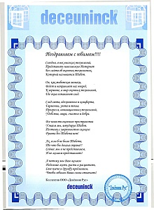 ![]() Дорогие друзья! Поздравляем Вас с Юбилеем!!!! Сегодня, в век высоких технологий, Представить невозможно Интернет Без сайта об оконных технологиях, Который называется Тибет. Он, как тибетские монахи, Ведет и направляет нас вперед, К вершине, в мир оконных технологий, Где окна оставляют след. След света, вдохновенья и комфорта, Гармонии, уюта и тепла. Прогресса, инновационных технологий, Удобства, мира, счастья и добра. Все новости оконного пространства Узнаем мы, штудируя Тибет. Поэтому с уверенностью скажем: Рунета без Тибета нет! Ах, если б не было Тибета, То что бы делала страна?! Сейчас мы и не представляем, И не желаем представлять! А потому мы Вам желаем Подольше жить, расти и расцветать, Свое плечо и дружбу предлагаем, Чтобы юбилеи Ваши снова отмечать! Коллектив ООО «Декёнинк Рус» |