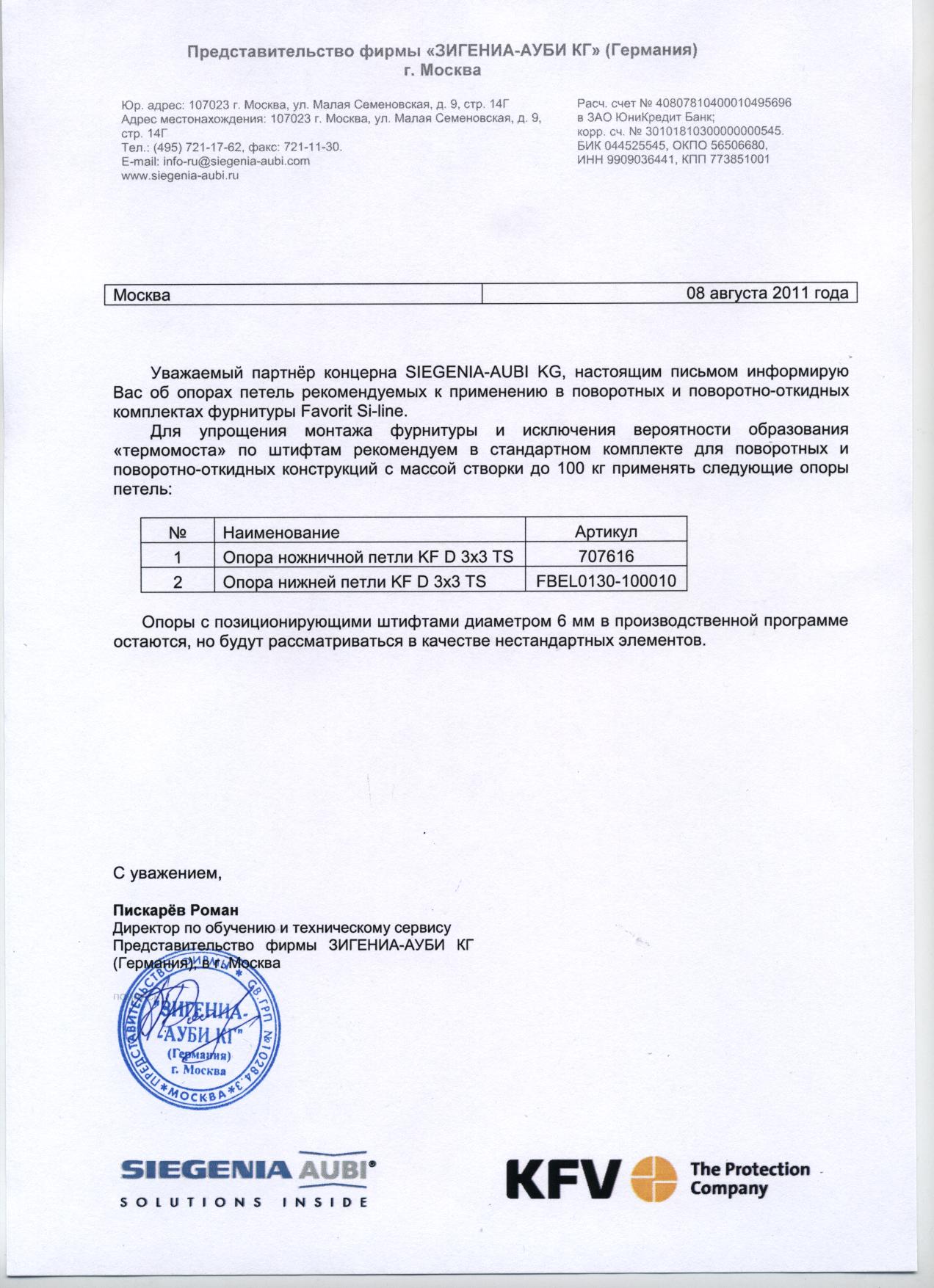 Информационное письмо от концерна SIEGENIA-AUBI KG.