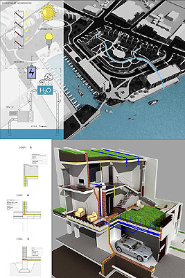 Согласно конкурсному заданию, молодые проектировщики должны были разработать концепцию «зеленого» микрорайона, который планируется реализовать в рамках программы восстановления территории бассейна реки Трент (Ноттингем, Великобритания). При этом жилье должно отвечать самым высоким требованиям по теплозащите, акустике, пожарной безопасности и, конечно, энергоэффективности. Нельзя не признать, что для российских проектировщиков последнее условие представляет известную сложность, ведь проблеме сокращения потребления энергии в нашей стране стали уделять внимание лишь совсем недавно. К примеру, максимальный показатель энергопотребления для «пассивного» дома в Европе равен 15 кВт совокупной энергии на квадратный метр, тогда как в России этот показатель колеблется от 120 до 220 кВт! Что и говорить, разница огромна. Мы, по сути, отапливаем улицу, но теплее от этого никому не становится. Собственно, концерн «Сен-Гобен» потому и проводит этот конкурс, что является одним из мировых разработчиков технологий и конструкций (в том числе наружных стен и окон), позволяющих значительно снижать теплопотери, и заинтересован в их активном применении.