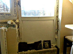 В течение всего того времени, что представители фирмы пытались решить проблему, стены у квартиры фактически не было, а на улице уже достаточно холодно. Мало того, в квартире проживает 87-летняя женщина с не вполне крепким здоровьем. В конце концов, новое окно (оно было верных размеров) удалось каким-то образом закрепить макрофлексом, дверь осталась стоять старая, работники ушли, но пообещали вернуться в течение трех дней. А жильцы остались мерзнуть
