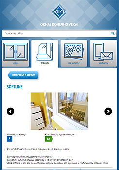 Указанные задачи являются основными и для мобильного сайта VEKA, на котором потребитель может получить много интересной информации об окнах из пластика и выбрать наиболее удобный офис продаж окон из профиля VEKA при помощи специальной «Карты партнеров».