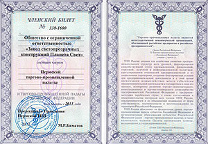 15 августа 2013 года состоялась 11 церемония приема новых членов в Пермскую торгово-промышленную палату. Одиннадцать компаний Пермского края, в том числе партнер компании завод пластиковых окон «Планета Свет» получили членские билеты – официальные документы, символизирующие принадлежность к бизнес-сообществу региона.