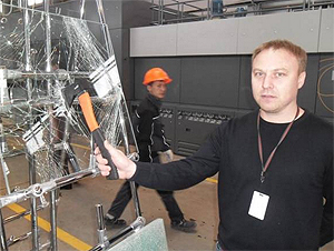 Предприятию есть, чем гордиться и что показать. Сейчас здесь производится все – от маленьких форточек до огромных витрин. Действуют две линии по производству стеклопакетов, печь по закалке стекла и линия по производству триплекса. Здесь можно убедиться в возможностях стекла с триплексом – его с трудом может пробить металлический топор. Закаленное стекло в печи нагревается до температуры в 600 градусов Цельсия и резко охлаждается. После этого по нему можно ходить и даже прыгать.