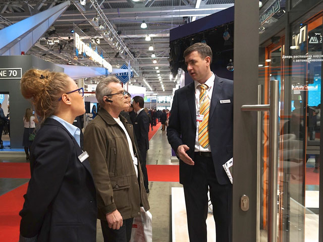 Внимание гостей привлек уникальный продукт, представленный только на стенде компании ТБМ – раздвижная конструкция с фурнитурой INTERNIKA SP для створок весом до 200 кг. и шириной до двух метров.