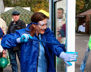 На сцене были установлены два стенда: один с простым окном, а второй с «Умным окном». Каждому участнику «Силового приема» отводилось время на взлом окна – 3 минуты. С простым окном оказалось все просто, а вот с «Умным окном» из профиля и фурнитуры немецкого производства пришлось приложить массу сил, ловкости: на взлом первого окна ушло 25 минут, а на взлом второго 29 минут.